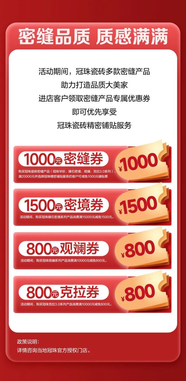 冠珠质造 省心甄选 9.9元抵1000元,密缝产品品质焕新家!2026年315品质服务月...