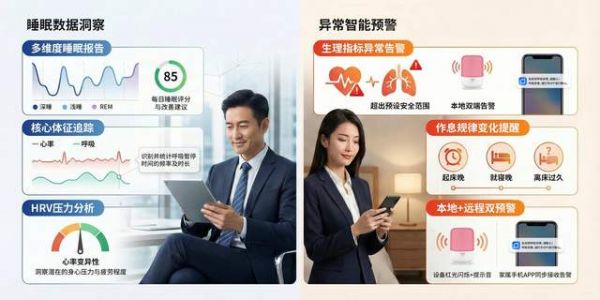 对于追求睡眠舒适度与安全性的中老年群体,传统穿戴式设备往往带来束缚感与心理负担。三思床头灯采用非接触式毫米波雷达传感器,以“零束缚、零操作、零负担”的方式,默默守护长辈的夜间安睡。设备可持续监测心率、呼吸频率,并能智能识别整夜呼吸暂停等异常事件。
