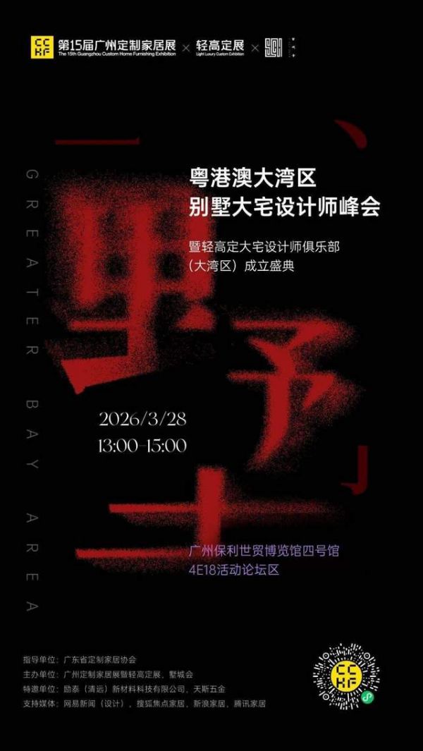 三月羊城,春暖花开。第15届广州定制家居展暨轻高定展将如约而至,汇聚行业精英,展示最新成果,引领发展趋势。作为展会的重要组成部分,粤港澳大湾区别墅大宅设计师峰会暨轻高定大宅设计师俱乐部(大湾区)成立盛典,将为这场行业盛会增添一抹亮丽的色彩。