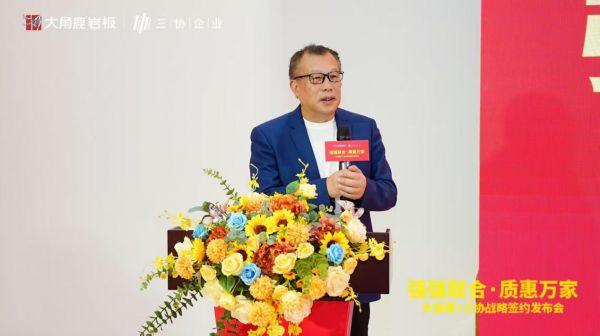 3月19日,以“强强联合·质惠万家”为主题的大角鹿岩板与三协建材战略签约发布会在佛山成功举行。