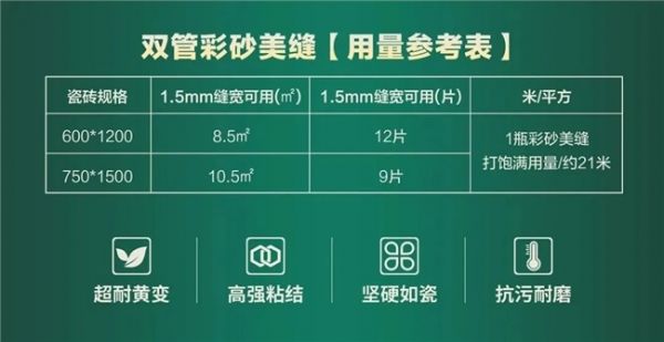 本系列美缝剂为木纹砖专用美缝剂,一砖一色定制色,铺贴过程中能实现砖缝隐形,提升整体质感,同时防水防污、易清洁,让家装颜值持久在线。
