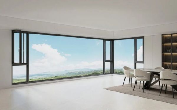 新标冠云系列大玻璃全景幕墙窗,2.8m大玻璃+到顶窗扇,视野开阔,沉稳大气,为解决3m超高洞口安全难题而生。同时内开内倒的两种开启方式,又满足了室内通风与安全防盗的需求,为别墅、大平层等高端住宅提供可靠的大玻璃封阳台解决方案。