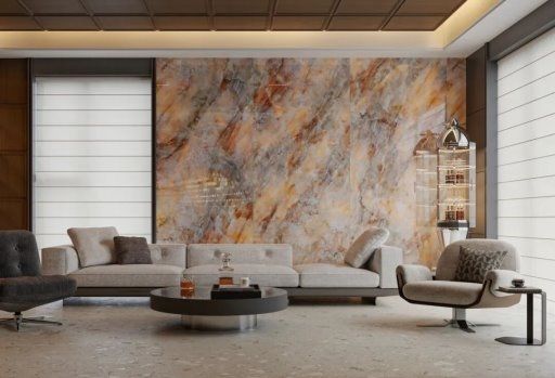 在追求极致物理性能的同时,马可波罗同样关注产品的外观美学。通过引入高精度3D喷墨打印技术,并结合AI算法,生产线能够将天然石材、木质的立体纹理与色彩,以极高的精度和真实感还原于砖面,满足了现代家居对个性化美学的多元需求。