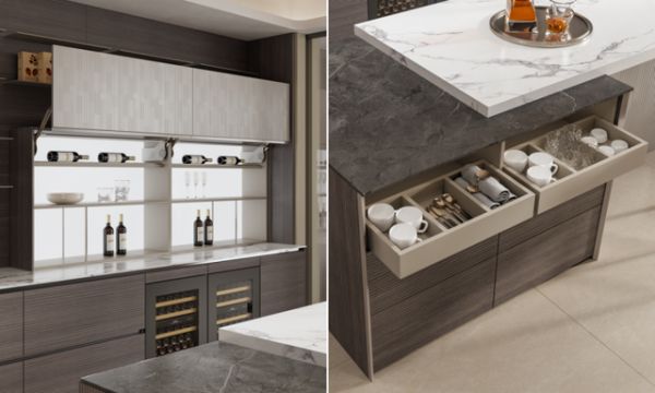 紧扣“轻烹饪,重生活”的理念,全友将森林的呼吸韵律转化为空间语言,萃取天然肌理,融入柔和光影,推出新品橱柜「绅度+」。聚焦早咖夜小酌场景,把咖啡角、迷你酒柜与高效烹饪系统无缝融合,既满足对自然的向往,也适配新锐白领的品质生活需求,让每一次轻烹饪都成为沉浸式的身心疗愈。
